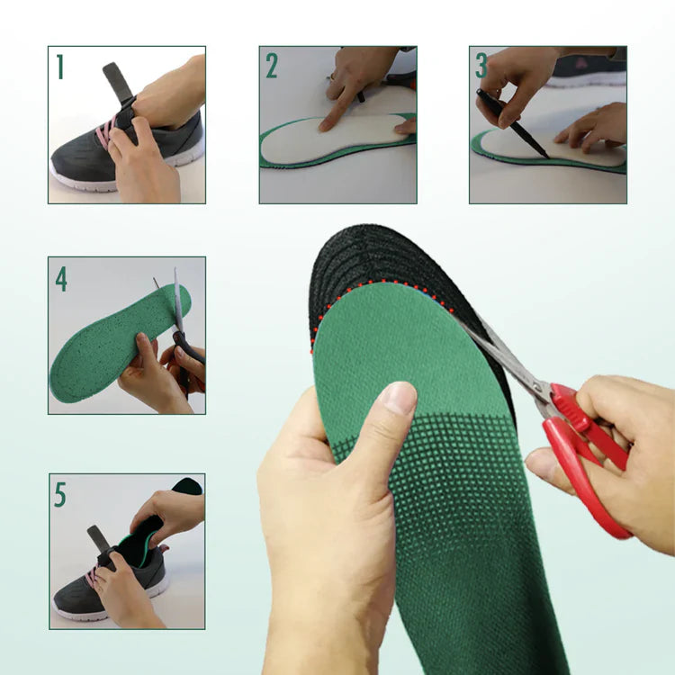 La combinaison des chaussures orthopédiques et de la semelle Geiasou® ergonomique soutient la voûte plantaire, guide la posture et soulage les articulations. Idéale pour les personnes sujettes à la fasciite plantaire, à l’éperon calcanéen, aux pieds plats, aux douleurs d’arthrose, aux genoux ou au dos.